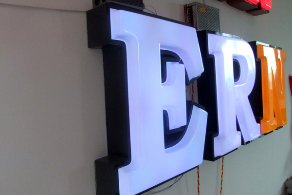 吸塑字也是種發(fā)光字,板面通常使用亞克力板吸塑成型,再由底座等組合而成。其內(nèi)部置入LED燈或是高壓燈,表面工藝有平面、平鼓、球鼓、棱鼓等形式,箱體材料有鐵皮烤漆、鋁型材、不銹鋼、鈦金等,字面色彩既可以是固有色板,也可以是色或四色絲印。