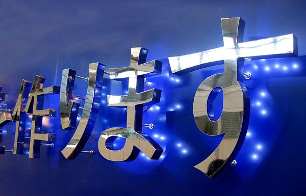 制作工藝:字體由字殼、LED燈以及螺桿組成。先制作字殼,采用精工工藝,激光切割,激光焊機(jī),同事焊接入螺桿所對應(yīng)的螺母,打磨拋光。LED燈選用防水燈,固定在字殼后面。安裝的時(shí)候,把螺桿邊固定于字殼,邊固定于墻壁即可安裝完成。