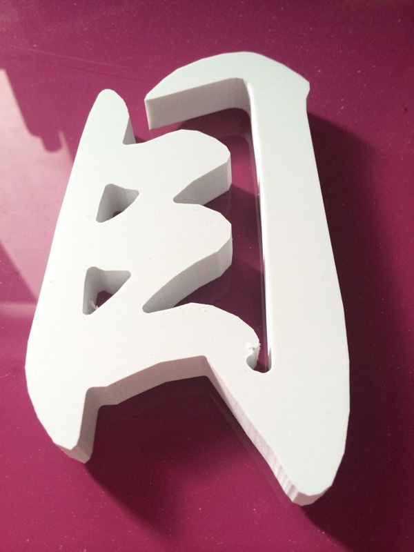 制作工藝:用雕刻機雕刻pvc字,經(jīng)過打磨邊處理,再進行噴漆,并曬干。