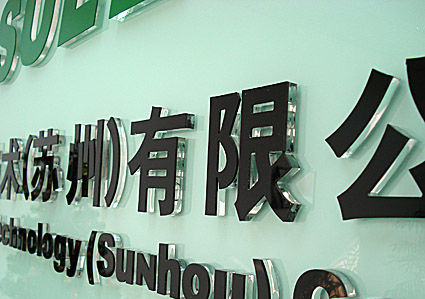 制作工藝:水晶字貼金屬片由水晶板和金屬片構(gòu)成。底部的水晶板用8mm厚度的透明水晶板經(jīng)過激光切割出字形,上面的鏡面不銹鋼則用等離子切割機切割出字形,再以有機藥水固定完成。