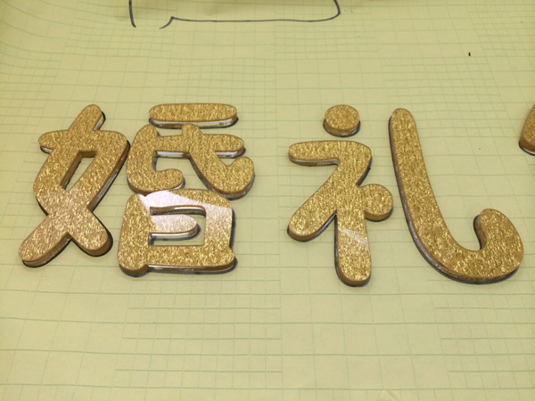步:同平鼓字的制作方法相同,只是各邊及各角暫不磨成圓弧狀.二步:加高、成型.所加高的厚度要跟字的大小成比例、協(xié)調(diào)致做出來(lái)的東西才美觀,步驟與尖鼓字制作大致相同,只是刀具用的是圓角刀.
