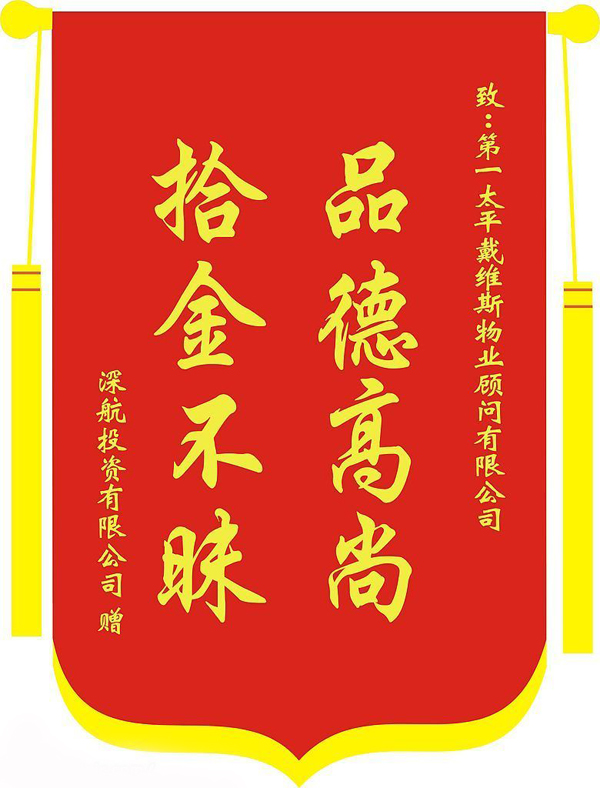 錦旗般是用彩色綢緞制成的旗子,常用來送給團(tuán)體或個(gè)人以表謝意.錦旗上可以應(yīng)刷不同的話語,現(xiàn)在般都是機(jī)印的,圖案和文字都可以隨意設(shè)計(jì),色彩艷麗,環(huán)保,無污染,精致,像般常用的錦旗標(biāo)語有:拾金不昧,品德高尚;業(yè)服務(wù),值得信賴;團(tuán)隊(duì);文明楷模等。
